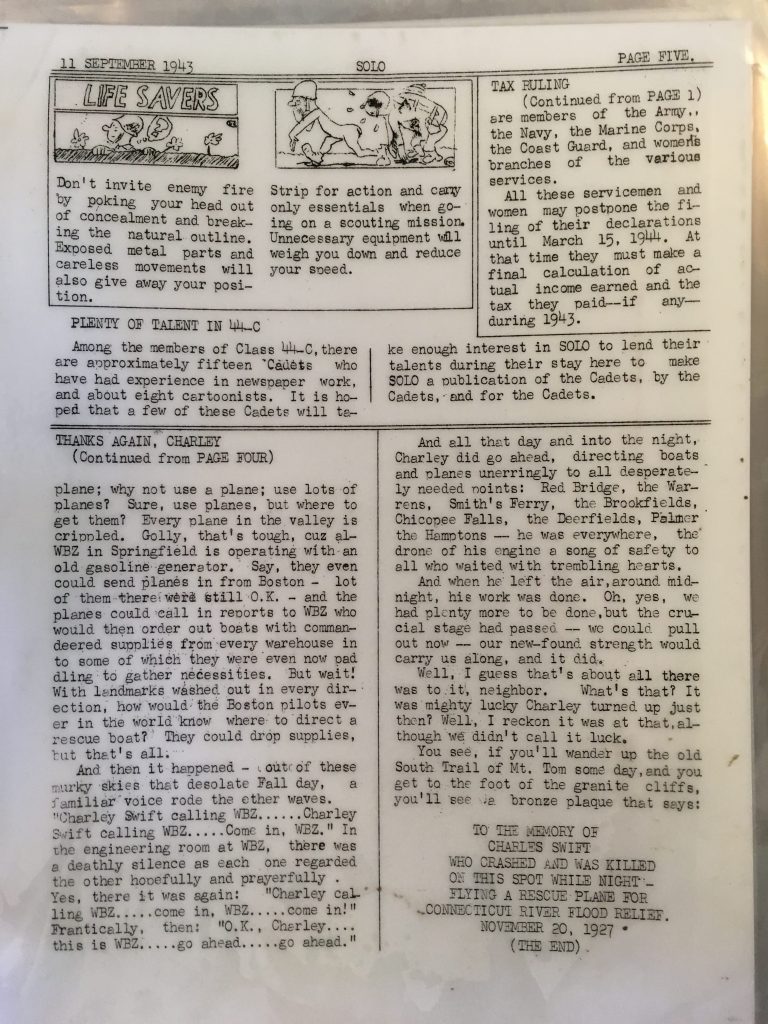 Where does it to that? In a reconstructed training room in Hangar 1. As I was looking at how the pilots learned what enemy planes looked like, my daughter called me over.[fn1] She was reading Solo, which appears to be a newsletter from Moton Field, the Tuskegee flight school, and she pointed it out to me: