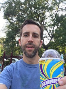 After my wife and kids spent the day on the beach watching the Air and Water Show rehearsal, they were ready for some Slurpee. So, when I got out of work, we walked the three blocks to the nearest 7-Eleven. (Last year, we took berry-picking buckets; this year, we were much more modest and just brought cups my father-in-law bought when we took him to a Cubs game a couple years ago.)